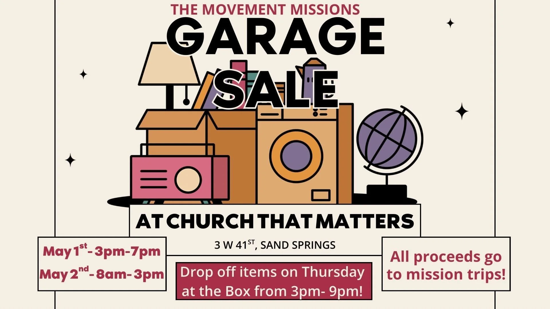 Hey Church That Matters! Our Youth Ministry, The Movement, is getting ready for their summer mission trips—and we’ve got a super practical (and fun) way for you to be part of it. We’re hosting a fundraising garage sale, and we need your help to make it happen!